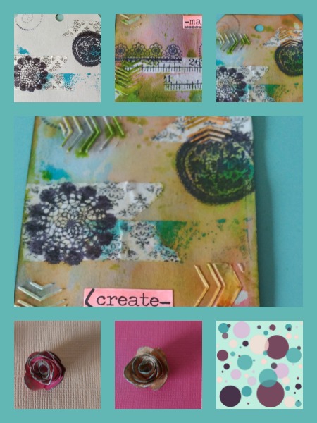 I have to admit I got problems with the first stamp I used, it didn't stamp well on the washi tape and the tag, I tried with black and turquoise ink, as you see there is a bit of the turquoise one on the tag because I didn't stamp that part on the washi, I didn't know why happened that so I had to make something different of what I've thought, at the end the new stamps worked very well.